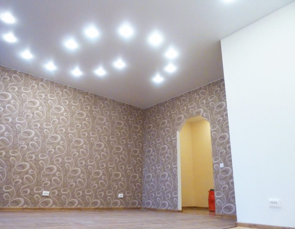 - С нашей компанией работать удобно: на натяжные потолки в Гомеле предоставляется рассрочка с возможностью подбора люстры или светильника. Звоните и уточняйте наличие акционной цены натяжного потолка за квадратный метр.